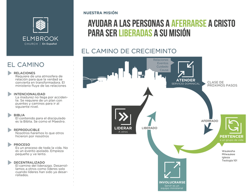 Somos un campus de la iglesia Elmbrook y nos reunimos en el Campus de Barker Rd. en Brookfield. Tenemos la misma misión y visión de la iglesia y nuestro pastor es parte del personal de Elmbrook. Nos reunimos a la misma hora de uno de los servicios de Elmbrook. Eso nos da una oportunidad especial para que nuestros hijos pueden ser integrados con otros niños de su edad, y ser parte de un ministerio desarrollado que no podrÃamos tener sin ser parte de una iglesia mas grande.